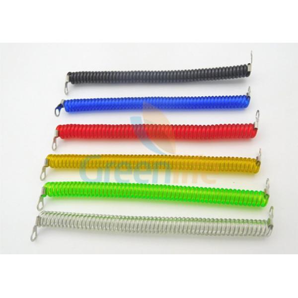 Plastic safe steel coil cable with eyelet, with customized length, available in transparent clear, red, blue, green, yellow standard colours as good fastener for checking fixture. This high strength coil and high pulling wire inside, providing good corrosion resistance and strength comparable to stainless steel or at least galvanized carbon steel grades. This smart resistance rope is most conveniently retainer in engineer working places, commonly used for auto checking fixture.