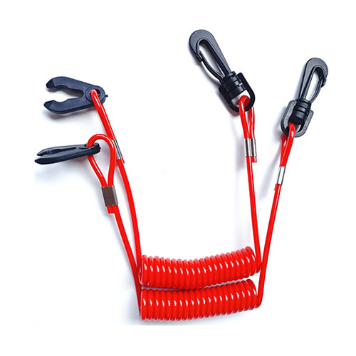Red Elastic Coil-style Jet Ski Safety Spring Leash With J-hook & Stop Switch Tool
